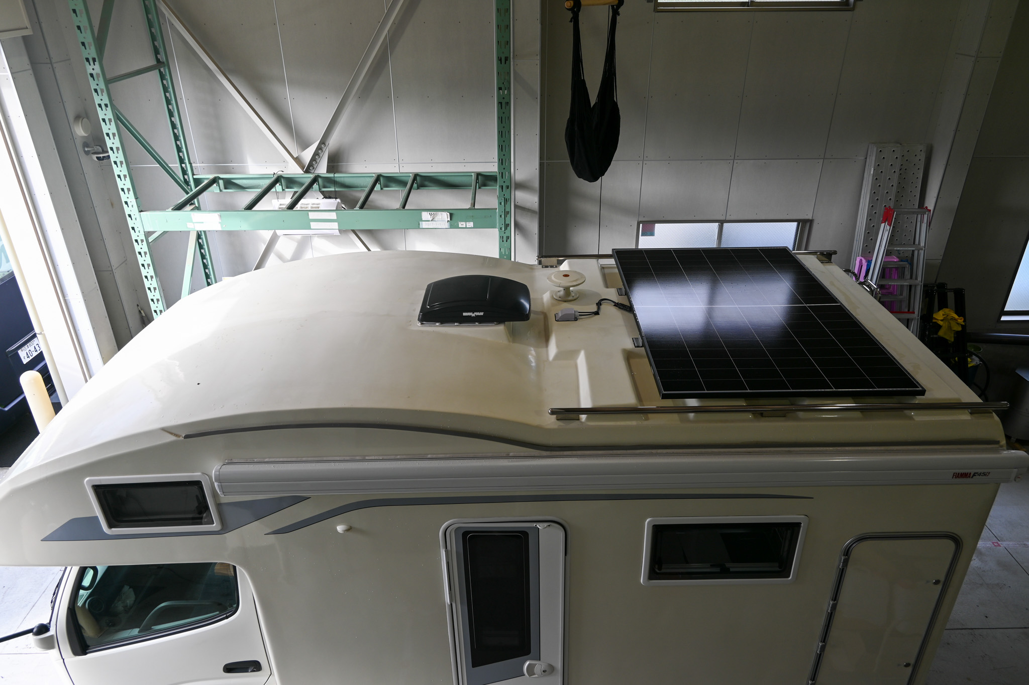 VANTECH社製 コルドリーブスにソーラーパネル460Wを搭載しました バッテリー容量は660Ah、走行充電器も追加させていただき、 蓄電容量、充電量ともに、強化させていただきました