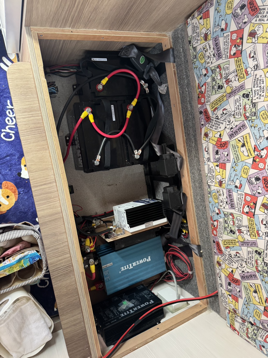 puppy480の電源システムをリチウム化させていただきました バッテリーは『VLS12-100』を3台搭載し 300Ahの容量になりました。