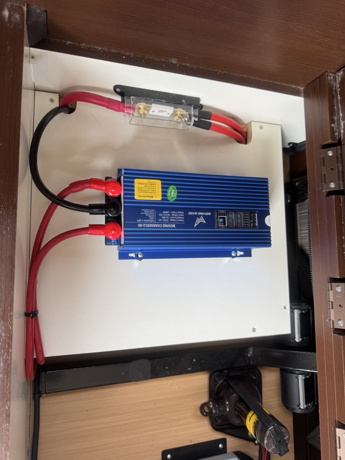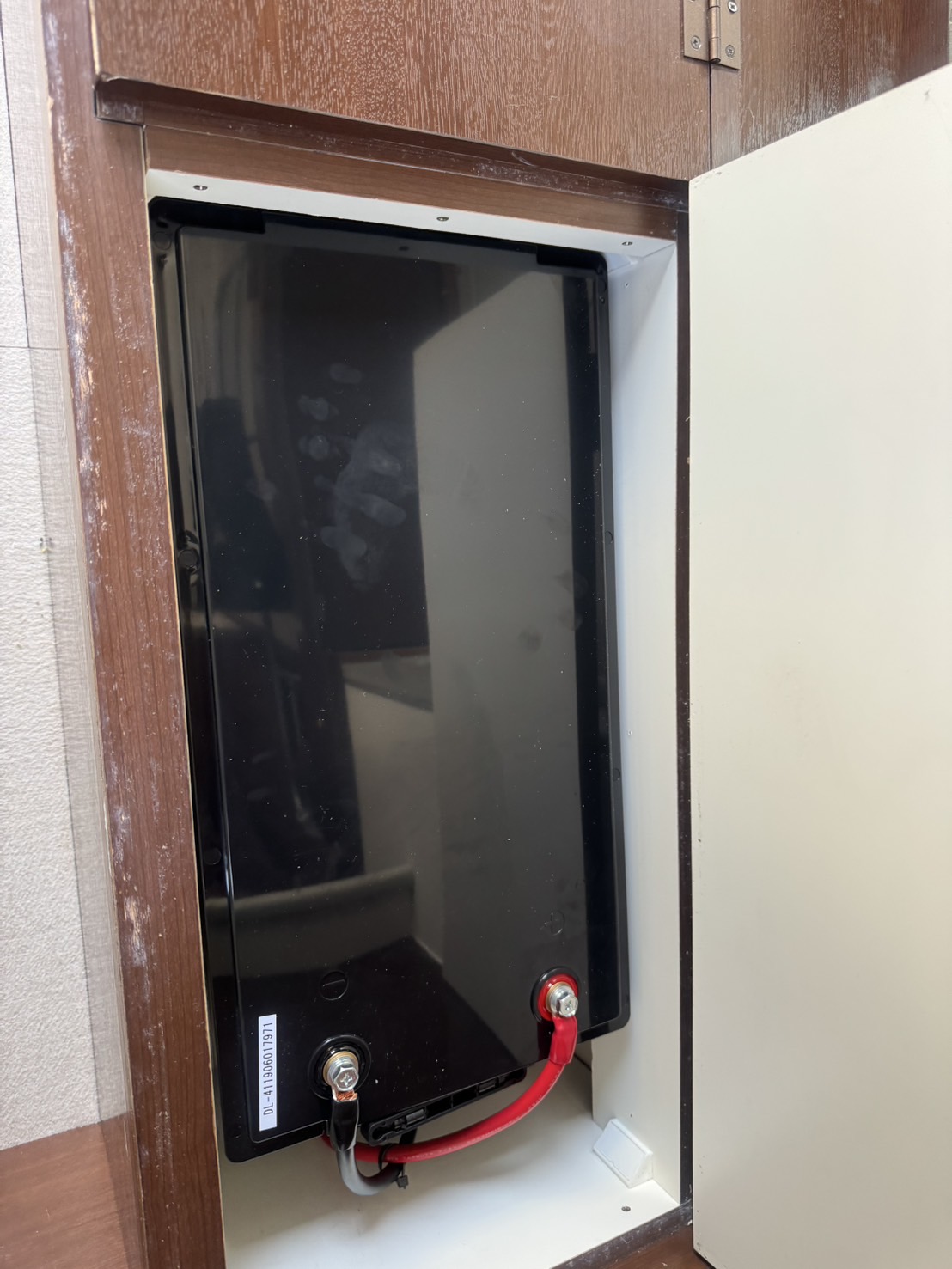 M.Y.Sミスティック製 アンセイエにリチウムイオンバッテリーを 760Ah搭載しました。 走行充電もアイドリング時で60Aほどの充電量! ソーラーパネルも搭載し、充電、蓄電ともに大強化しました