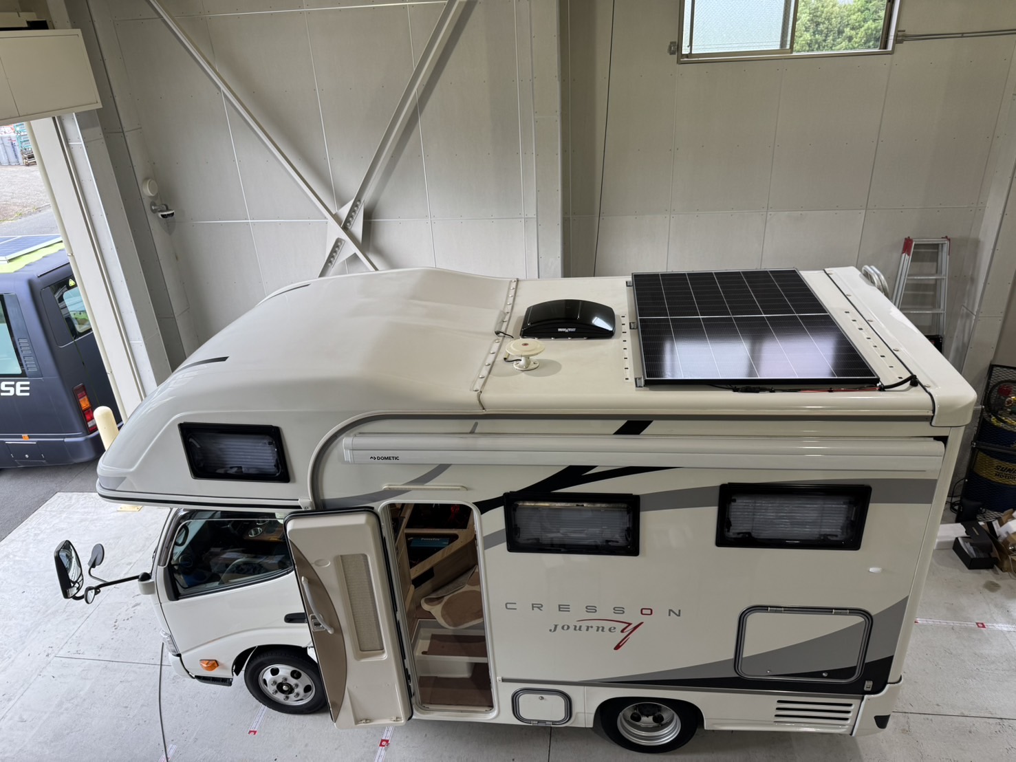 NUTS RV社製のクレソンジャーニーに リチウムイオンバッテリー920Ah搭載しました 走行充電器も強化し、ソーラーパネル440W搭載し、充電システムも大幅強化