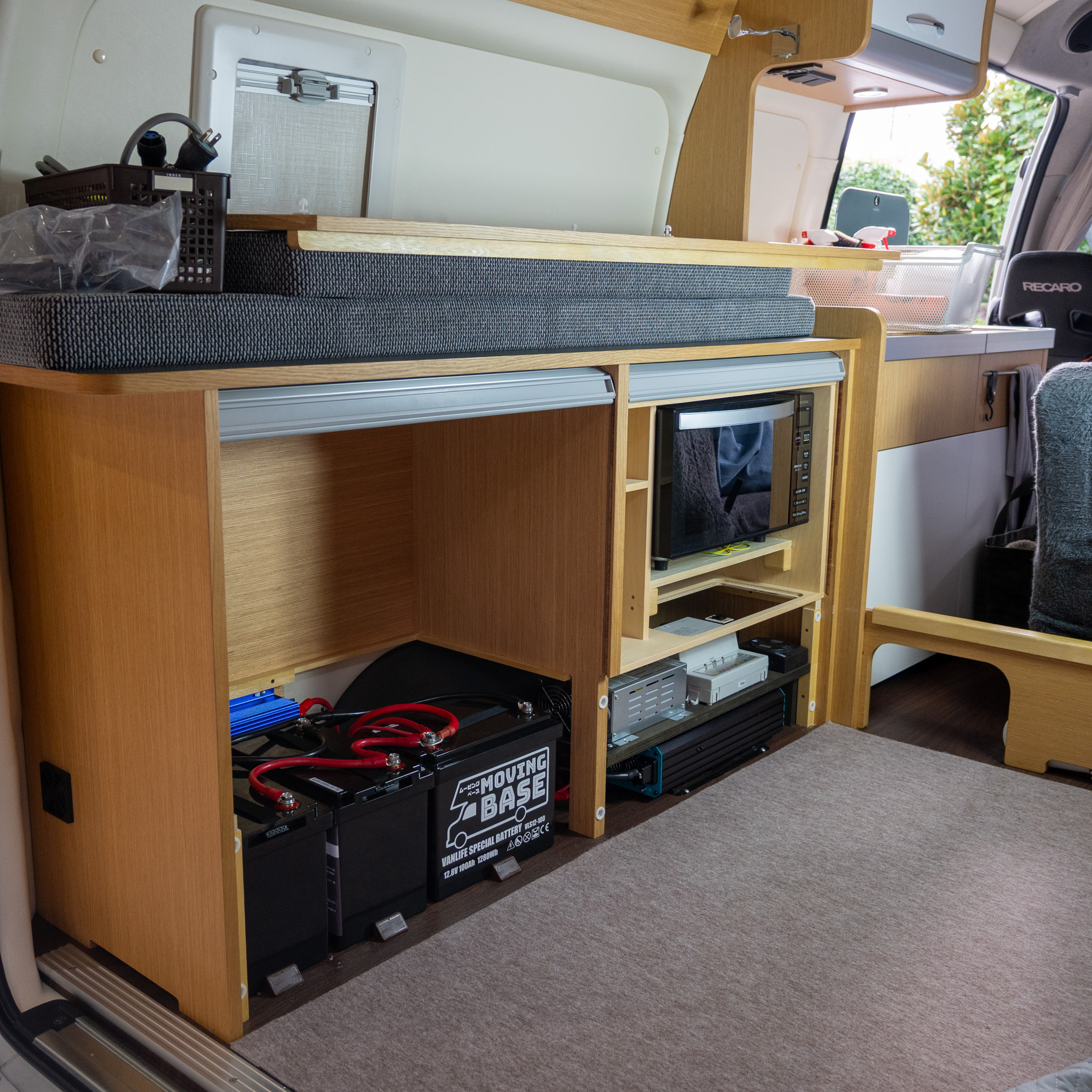 トイファクトリー製バーデン ・VLS12-100(100Ahリチウムイオンバッテリー) ・MOVING CAHRGER12-80(走行充電器) を搭載させていただきました。 また500wのインバーターを2000wインバーターに交換させていただきました、 リチウム化に伴い走行充電も強化させていただきました。 電源システムにお困りの方、お気軽にご相談くださいませ。
